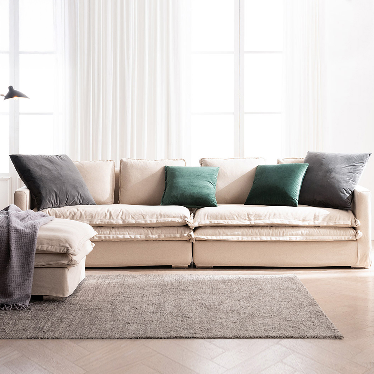 헬레나I) 4인용 구스다운 코튼 패브릭소파 + 스툴