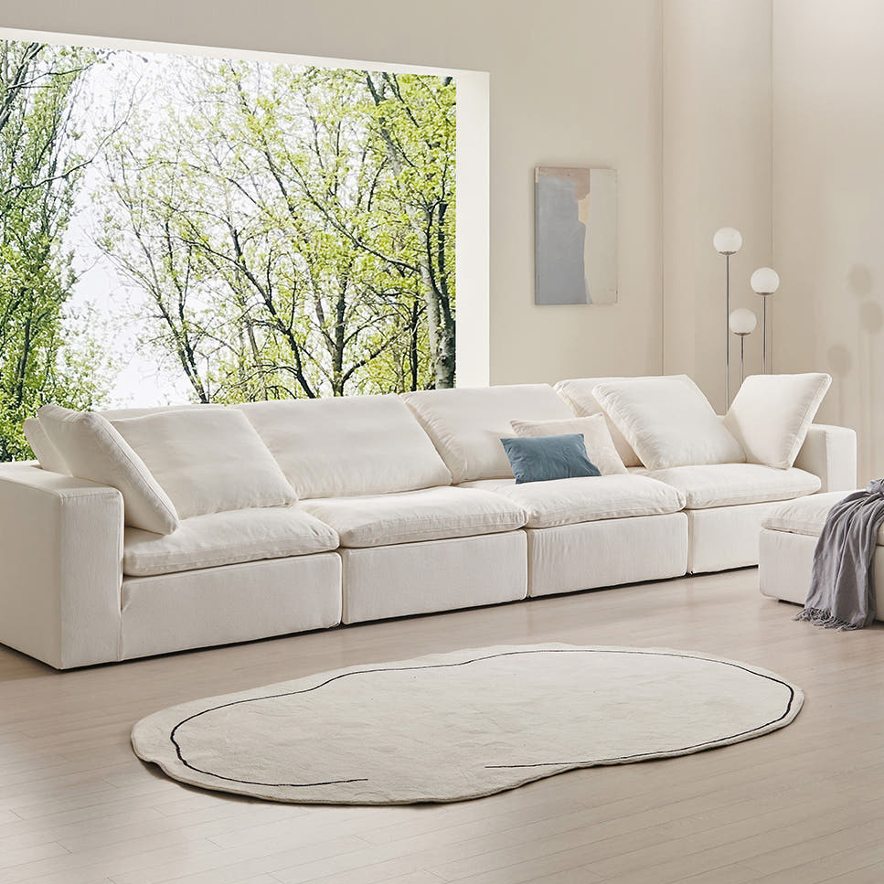 루체 6인용 구스다운 코튼 풀커버 워셔블 패브릭 소파 + 스툴