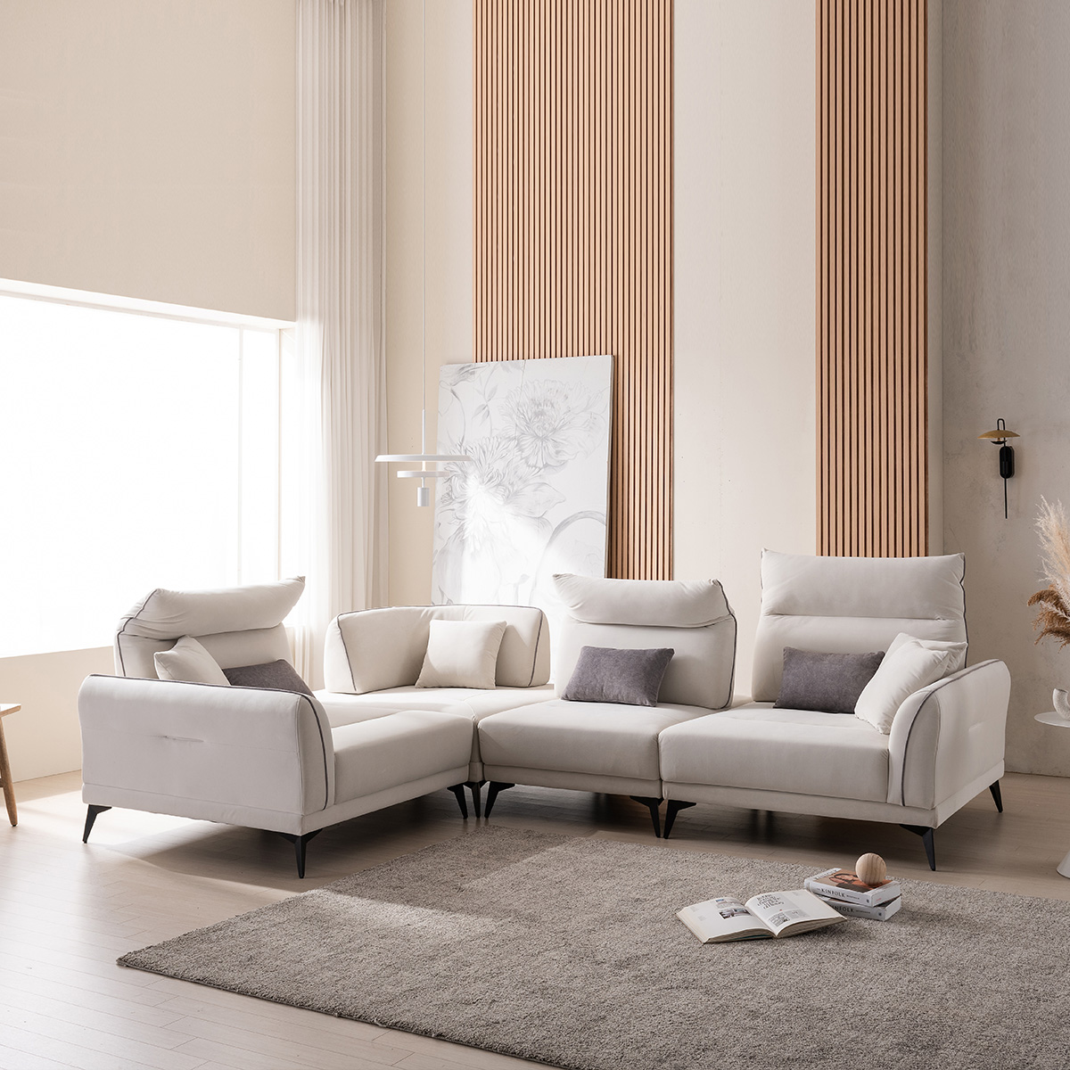티아라 6인용 코너 모듈형 기능성 패브릭 스윙 와이드 소파 (연출쿠션 미포함)