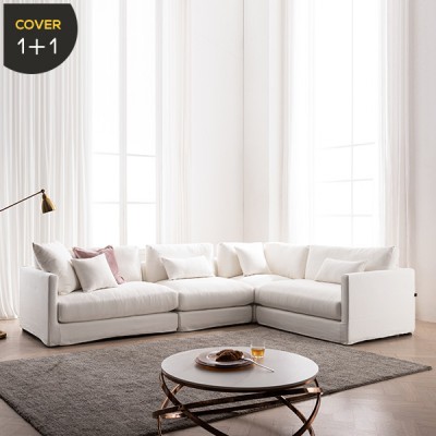 [1+1커버 증정] [풀커버]데본 코너 모듈형 구스다운 코튼 패브릭 소파