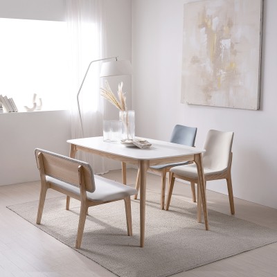 [JTBC "18어게인" 협찬]NEW 모다 6인용 애쉬 원목 통세라믹 식탁 세트 (벤치1+의자3)
