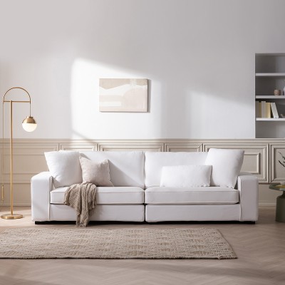 [전시상품 SALE][풀커버]돌체 4인용 구스다운 코튼 패브릭 소파 (여벌커버 미포함)