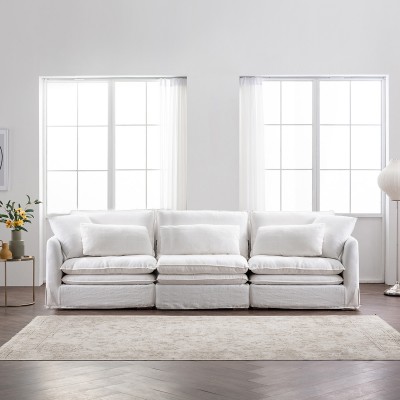 [단순변심 SALE][1+1커버 증정] [풀커버]로제따 구스다운 린넨 패브릭 소파(1인 팔걸이 좌+1인고이스+1인 팔걸이 우)