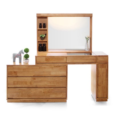 큐브내추럴고무나무 원목 조명 화장대 세트(거울별도)