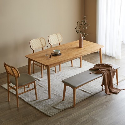 제니아 4인/6인 라탄 고무나무 식탁 세트 (벤치+의자)
