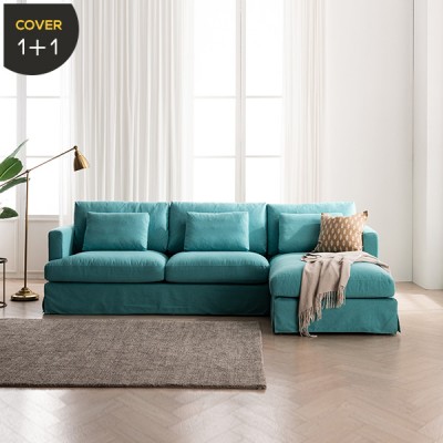 [1+1커버 증정] [풀커버]나오미 4인용 카우치 구스다운 림피오 패브릭 소파